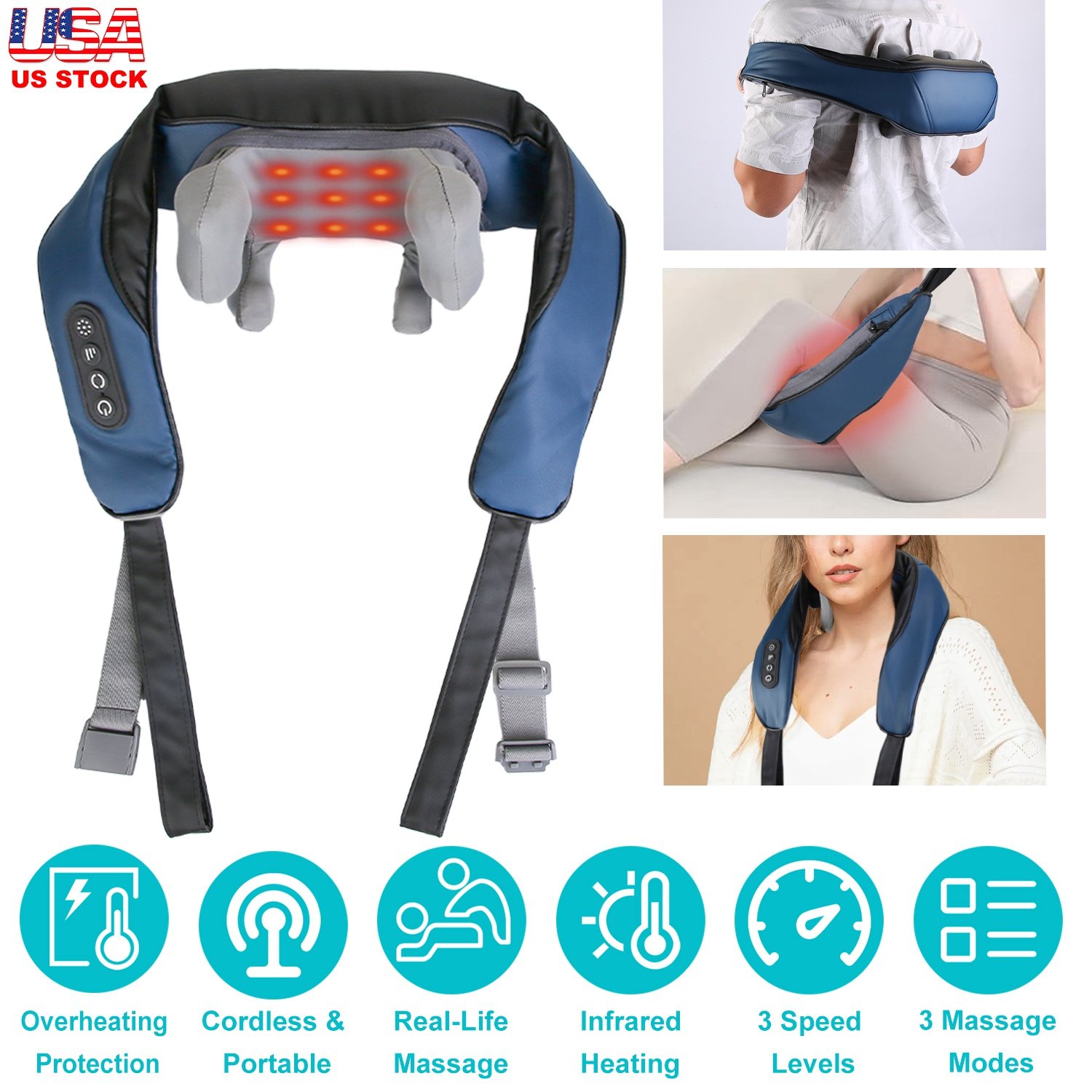 Don’t have enough time for weekly or even monthly salon massage? Is artificial massage too expensive? Our neck massage made of soft PU leather and breathable knitted fabric allows you to enjoy personal massage anytime anywhere. Come with 3 massage modes and 3 speeds, our massager adopting 6 silicone nodes simulates human-like grasping and kneading, can effectively release your tight, sore and tense muscles of neck, shoulders, back, waist, thighs, calves, feet, arms, etc.. Built-in LED infrared light brings constant warmth and speed up blood circulation. Furthermore, this rechargeable neck and shoulder massager is equipped with advanced NTC technology and 10 mins auto-off timer function, prevent any safety hazards due to overusing or overheating. An ideal gift for the one you loved.