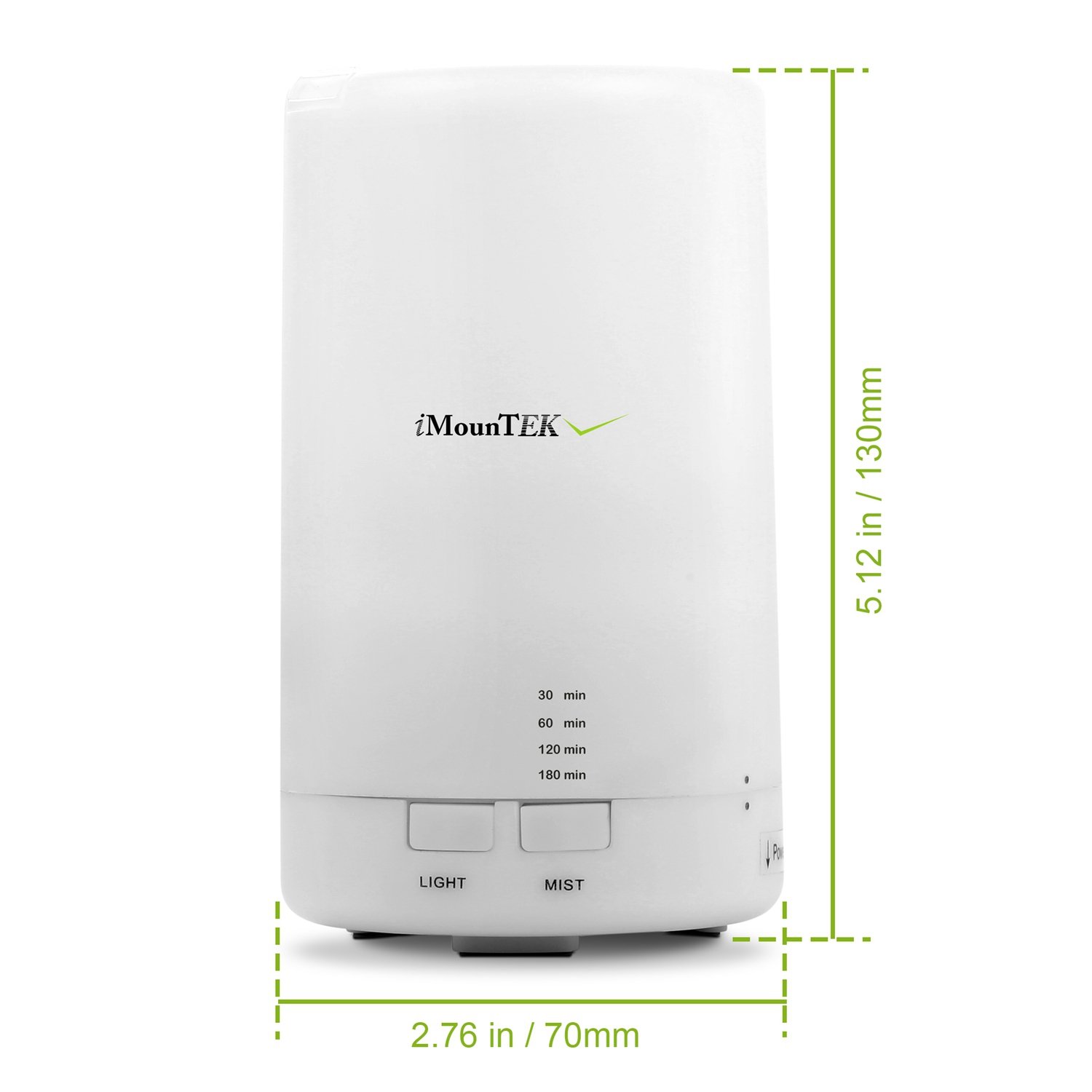 Our iMounTEK Aroma Diffuser andopts well-designed mist outlet and ultrasonic technology, which can be used as a aromatherapy diffuser with a few drops of your favorite essential oil or a humidifier without oils provides more than a conventional mist to output finer mist with ultra-low noise, it can uplift your spirits, assist in relaxation or ward off infections. With palm size, it works as a portable humidifier to give out ultra fine and smooth mist which can soften and moisten dry and chapped skin. Meantime, it comes with 7 LED color mood nightlight to create comfortable atmosphere.)